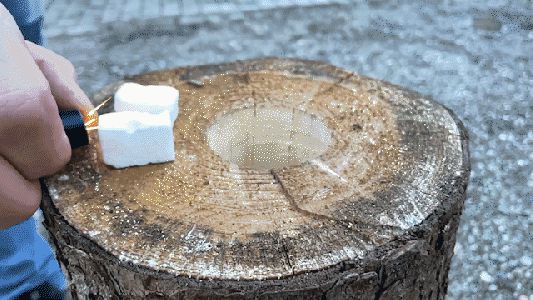 …deutlich weniger Funkenflug und Rauch entwickelt als herkömmliche geschlitzte Schwedenfeuer und Finnenfackeln.